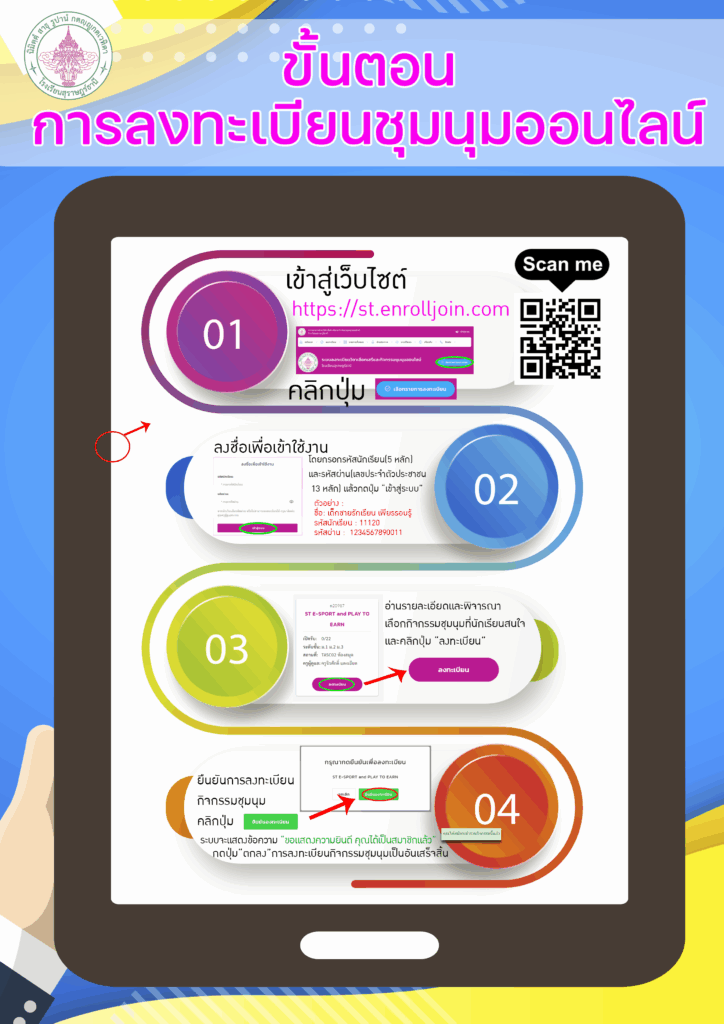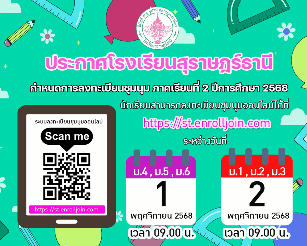 นอกจากนี้ให้นักเรียนศึกษารายละเอียดเกี่ยวกับข้อมูลชุมนุมที่เปิดรับและรายละเอียดเกี่ยวกับการลงทะเบียนชุมนุม ได้จากลิ้งด้านล่างนี้